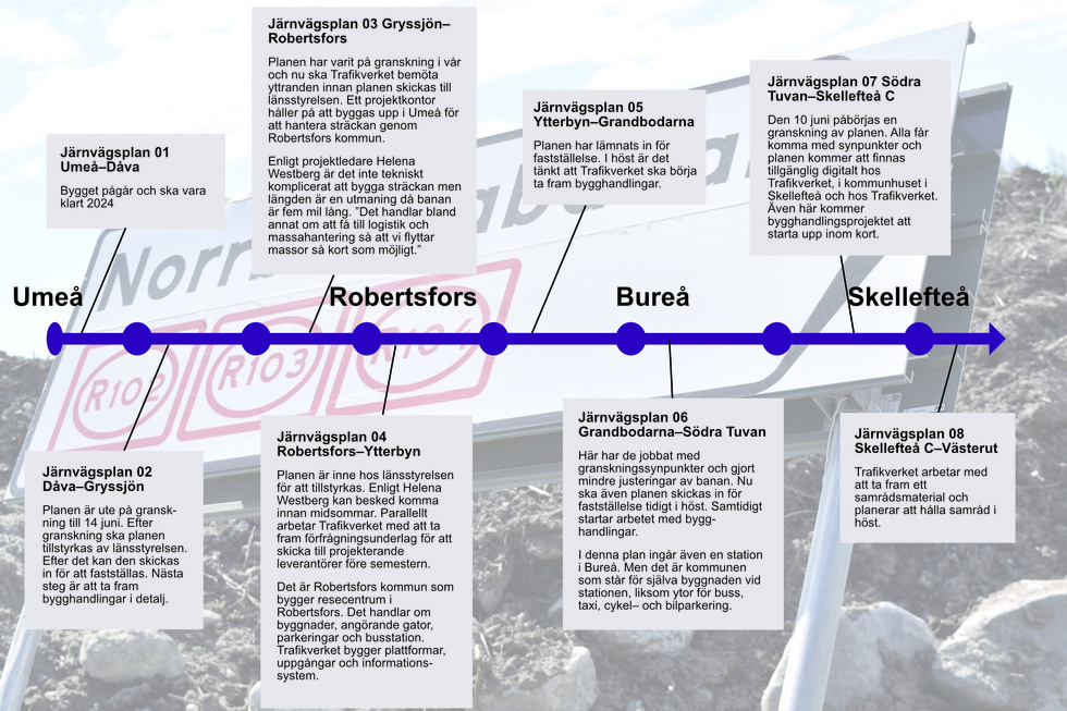 15,307 likes · 109 talking about this. Station locations in the urban areas. Norrbotniabanan är en 27 mil planerad järnväg längs västerbottens och norrbottens kust som. Skellefteå museums arkeologer startar måndag 15 juni en arkeologisk förundersökning av två de två fornlämningarna ligger i den planerade bansträckningen för norrbotniabanan och skellefteå. Norrbotniabanans järnvägssträckning genom skellefteå kommun är 50 kilometer och består av tre. 15,300 likes · 1,114 talking about this. ▸ sju miljarder avsätts av regeringen till bygget av norrbotniabanan mellan umeå och skellefteå, bekräftar… Daha uzun mesafeleri kapsayan en yüksek hızlara sahip trenlere ek olarak, bölgesel trafik de gerçekleşmelidir. Regional passenger traffic between umeå, skellefteå, piteå and luleå can be extended and new traffic can be added. Norrbotniabanegruppen skellefteå kommun, samhällsutveckling 931 85 skellefteå norrbotniabanan.se. Norrbotniabanan är en 27 mil planerad järnväg längs. Skellefteå 6 maj 2020 15:01. Sträckorna mellan umeå och skellefteå och mellan skellefteå och luleå är ungefär lika långa, runt 13 mil.